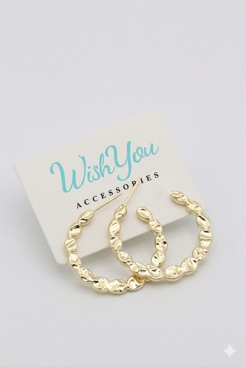 Farklı ve modern tasarımıyla dikkat çeken ezme halka küpe, klasik halka küpe modellerine hareketli bir dokunuş kazandırır. Altın renkli yapısı ve ezme desenli yüzeyi sayesinde ışığı yansıtarak şık bir görünüm sunar. Hem günlük kombinlerde hem de özel günlerde rahatlıkla kullanılabilen bu küpe, kadın küpe modelleri arasında stilinizi tamamlayan zarif ve modern bir aksesuar seçeneğidir.