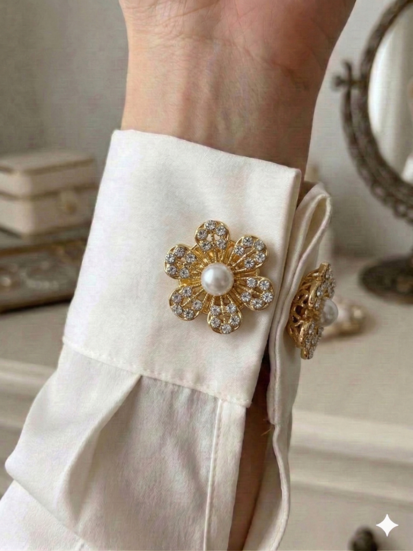 İnci & Taşlı Çiçek Düğme Broş