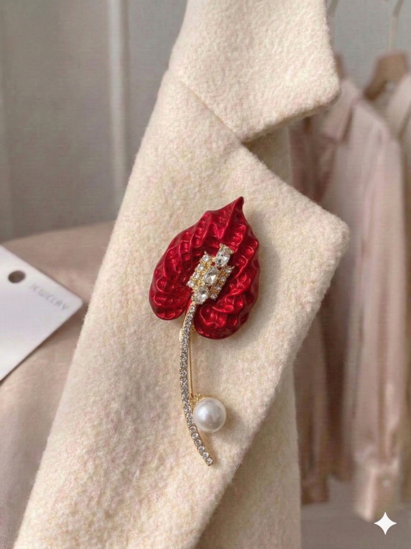 Taşlı Kırmızı Yaprak Rozeti