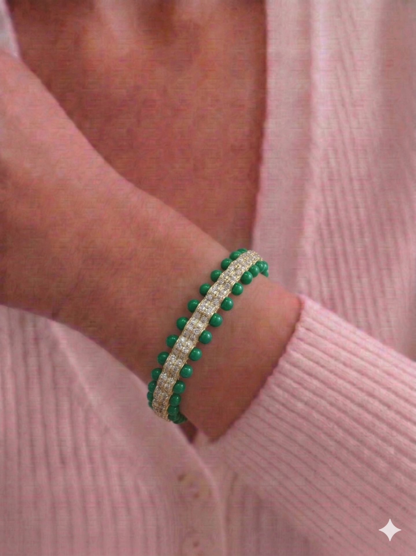 Yeşil Topçuklu Taşlı Kelepçe